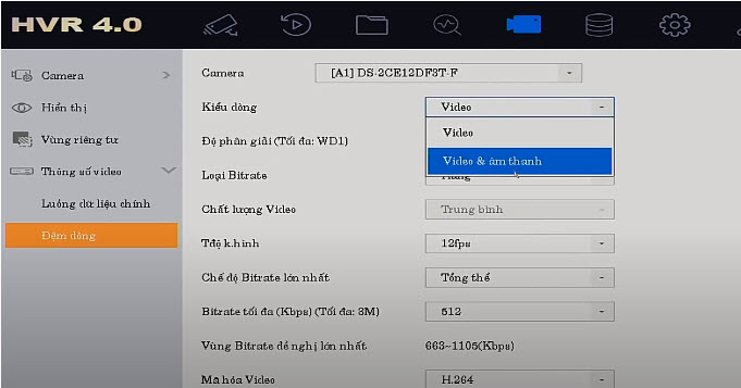BẬT TIẾNG MIC THU ÂM – Khi gắn Mic vào Cổng Audio in của đầu ghi DVR giao diện HVR 4.0