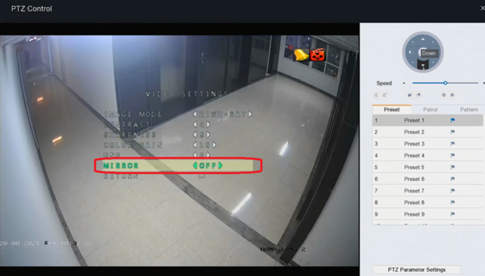 Điều chỉnh hình ảnh bị ngược trên đầu ghi trực tiếp kết nối với màn hình: Vào đầu ghi/đăng nhập mật khẩu ⇒ mở camera cần chỉnh ⇒ chọn PTZ control ⇒ vào menu chọn video settings ⇒ chọn mirro và tiến hành điều chỉnh hình ảnh.