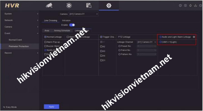 2) Cấu hình liên kết sự kiện trên DVR