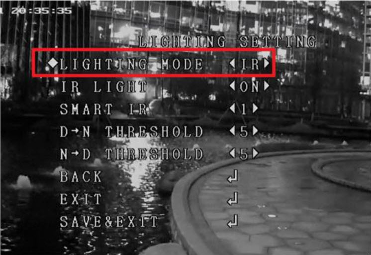 1) Nhấp vào Iris+ vào menu OSD, tìm LIGHTING MODE và đổi thành IR.