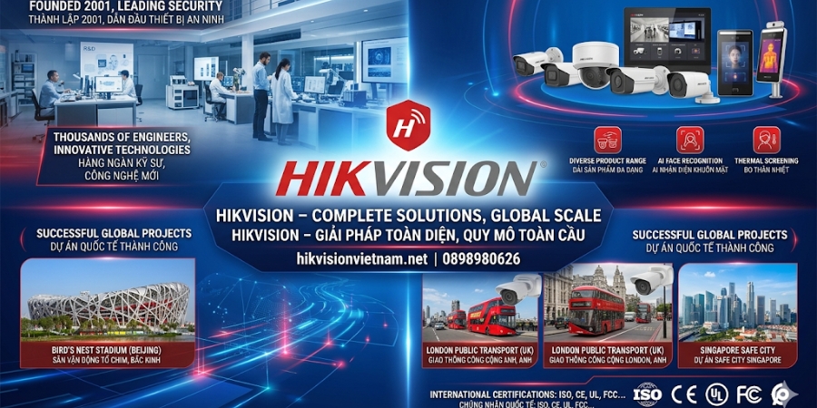Được thành lập từ năm 2001, Hikvision hiện là một trong những "gã khổng lồ" dẫn đầu thế giới về thiết bị an ninh. Điểm mạnh nhất của Hikvision là năng lực Nghiên cứu & Phát triển (R&D) với hàng ngàn kỹ sư, liên tục đưa ra các công nghệ mới.