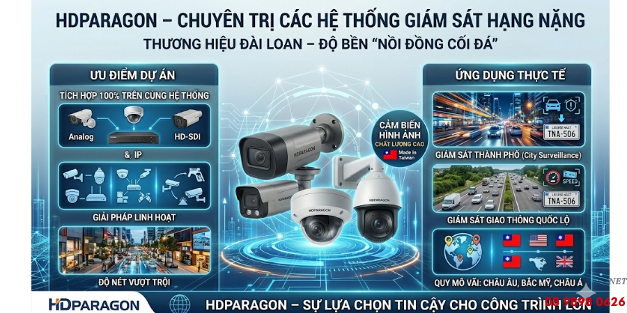 HDPARAGON là thương hiệu thiết bị an ninh uy tín có xuất xứ từ Đài Loan, nổi tiếng với việc trang bị cảm biến hình ảnh chất lượng cao và độ bền "nồi đồng cối đá". Đây là thương hiệu hiếm hoi mà bạn gần như không phải lo nghĩ về vấn đề bảo hành sau khi lắp đặt.