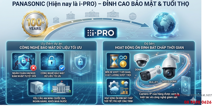 Với lịch sử hơn 100 năm phát triển, Panasonic (hiện mảng an ninh mang thương hiệu i-PRO) luôn là cái tên bảo chứng cho sự bền bỉ và chất lượng vượt thời gian. Camera IP của hãng được xem là kiệt tác về công nghệ giám sát.