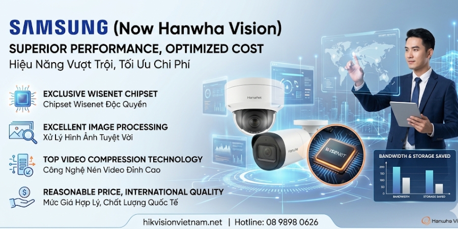 Mảng camera an ninh của Samsung hiện đã được chuyển giao và phát triển dưới tên gọi Hanwha Vision (Hàn Quốc), kế thừa toàn bộ tinh hoa công nghệ điện tử hàng đầu của hãng. Đây là giải pháp hoàn hảo cho những dự án cần chất lượng cao nhưng ngân sách không quá dư dả như các dòng camera Nhật Bản hay Châu Âu.
