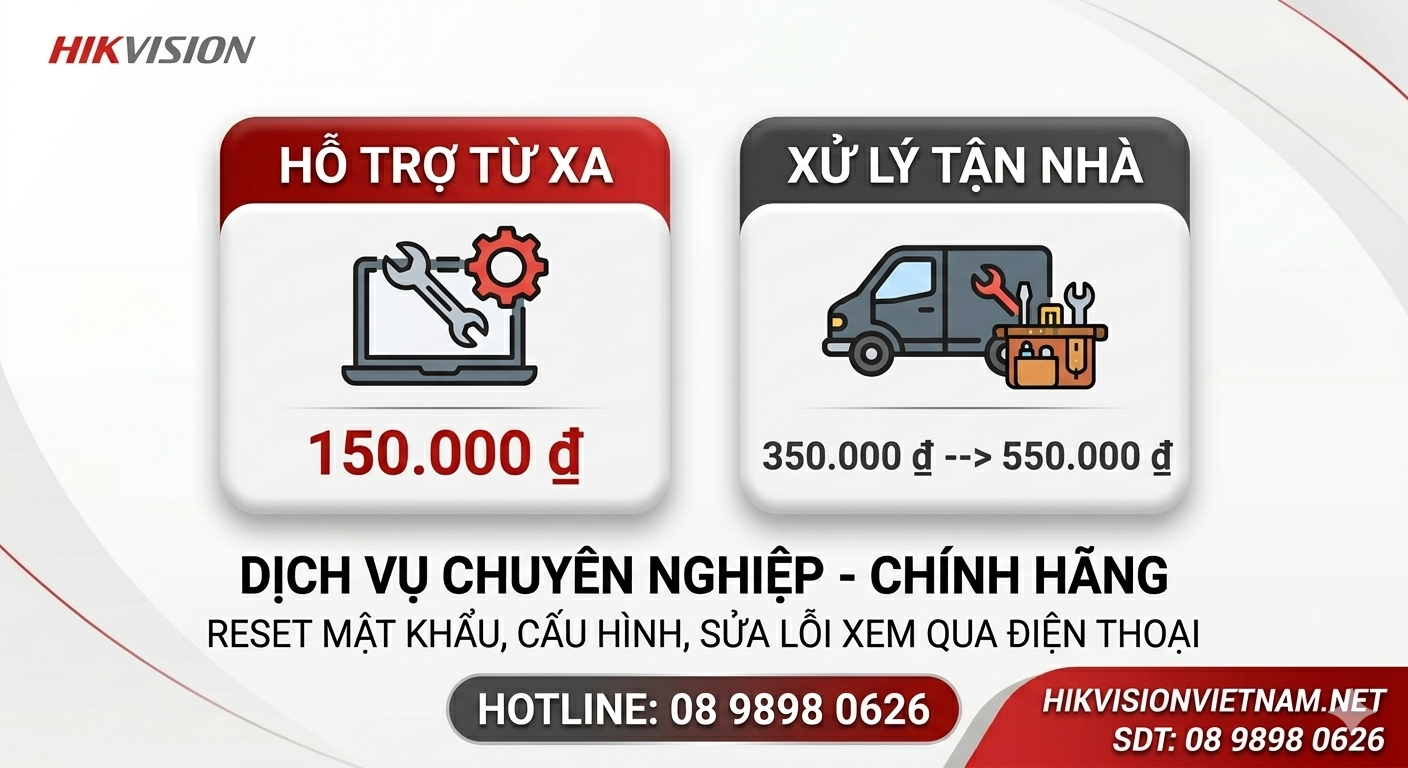 Bạn đang gặp sự cố với hệ thống giám sát và cần tìm dịch vụ sửa camera Hikvision tại nhà uy tín? Tại Hikvisionvietnam.net, chúng tôi chuyên khắc phục triệt để mọi lỗi kỹ thuật của camera và đầu ghi hình Hikvision. Với đội ngũ kỹ thuật viên dày dặn kinh nghiệm, chúng tôi cam kết mang đến giải pháp nhanh chóng, giúp hệ thống an ninh của bạn hoạt động ổn định ngay trong ngày.