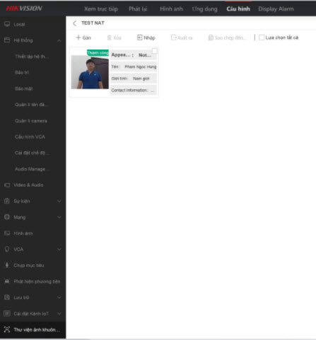 Chọn vào NVR hỗ trợ tính năng so sánh khuôn mặt