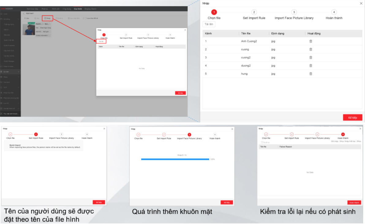 để thêm đồng thời nhiều khuôn mặt. Tại thẻ nhập bạn nhấn chọn Tải lên và chọn các hình ảnh khuôn mặt muốn thêm vào thư viên.