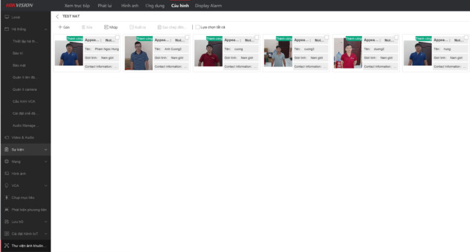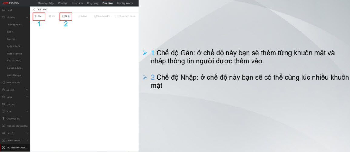 Bạn chọn vào Cấu hình- Thư viện ảnh khuôn mặt- Gán để thêm thư viện ảnh mới