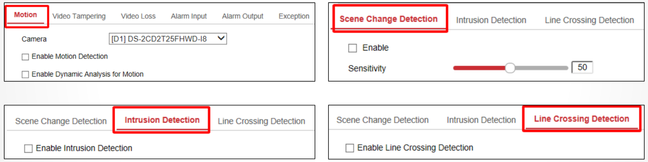 Tính năng nhận diện khuôn mặt sẽ KHÔNG thể sử dụng cùng lúc với các tính năng Motion Detection, Intrusion Detection, Line Crossing Detection, Scene Change Detection.