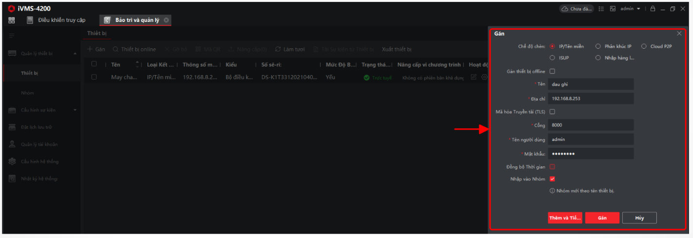 Bước 1 : Gán đầu ghi vào ứng dụng IVMS 4200
