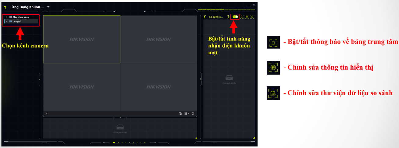 Bước 3 : Tùy chỉnh kênh camera muốn xem trực tiếp và tùy chỉnh tính năng nhận diện khuôn mặt