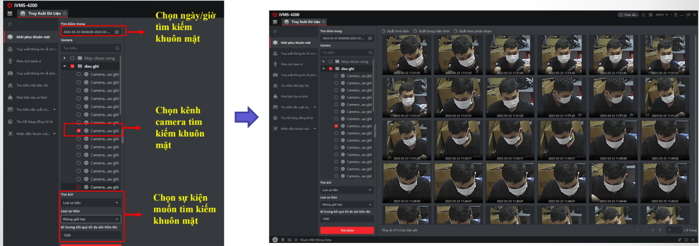 Bước 5 : Tìm kiếm lại khuôn mặt trên phần mềm IVMS 4200