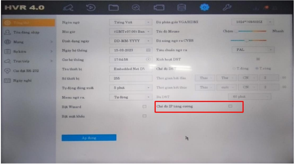 Bước 3 : Tắt tính năng tăng cường IP của đầu ghi