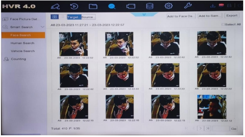 Tìm kiếm lại khuôn mặt trên màn hình đầu ghi