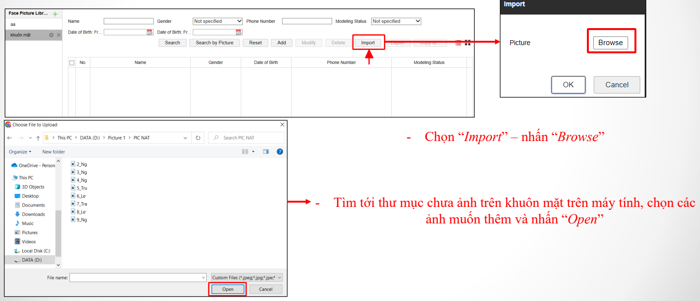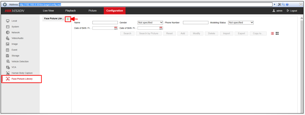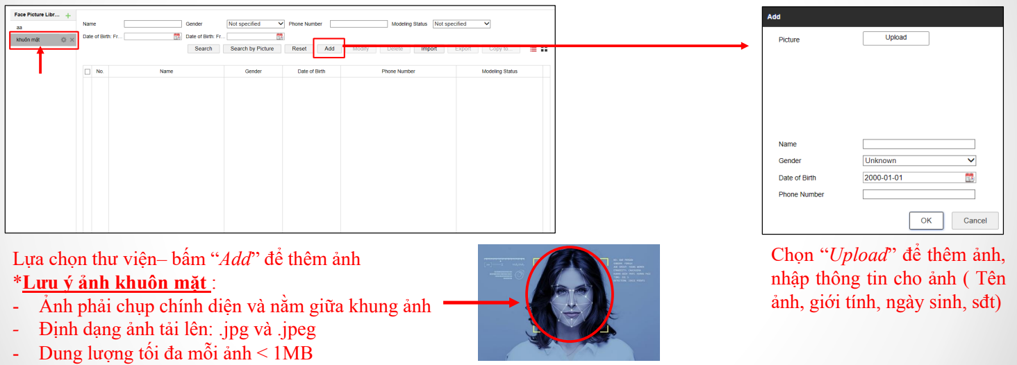 Chọn “Face Piture Library” - chọn “+” để tạo thư viện mới