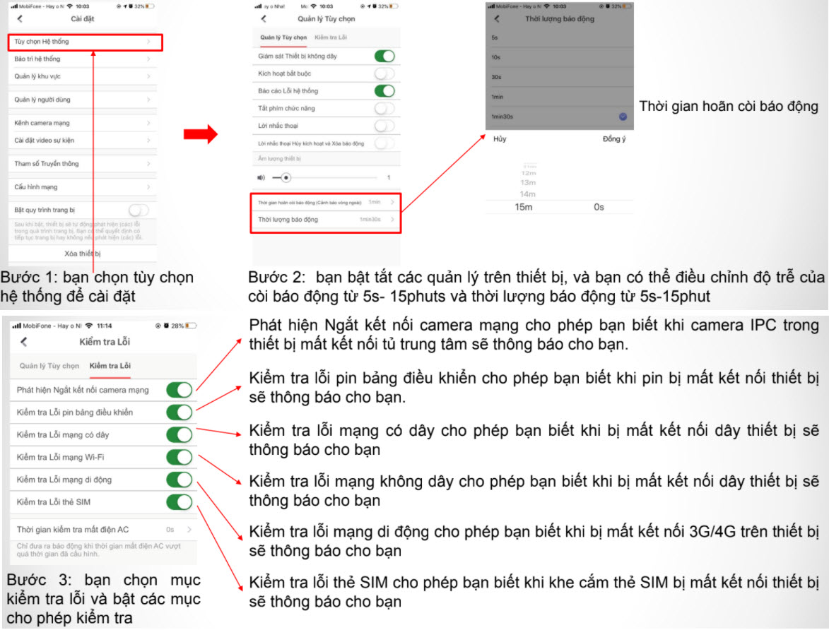 Đối với tủ báo động trung tâm không dây AXHUB cho phép cài đặt các tùy chọn hệ thống và cài đặt cảnh báo lỗi xảy ra trên tủ để bạn có thể khắc phục nhanh nhất. Để cấu hình bạn làm theo các bước sau: