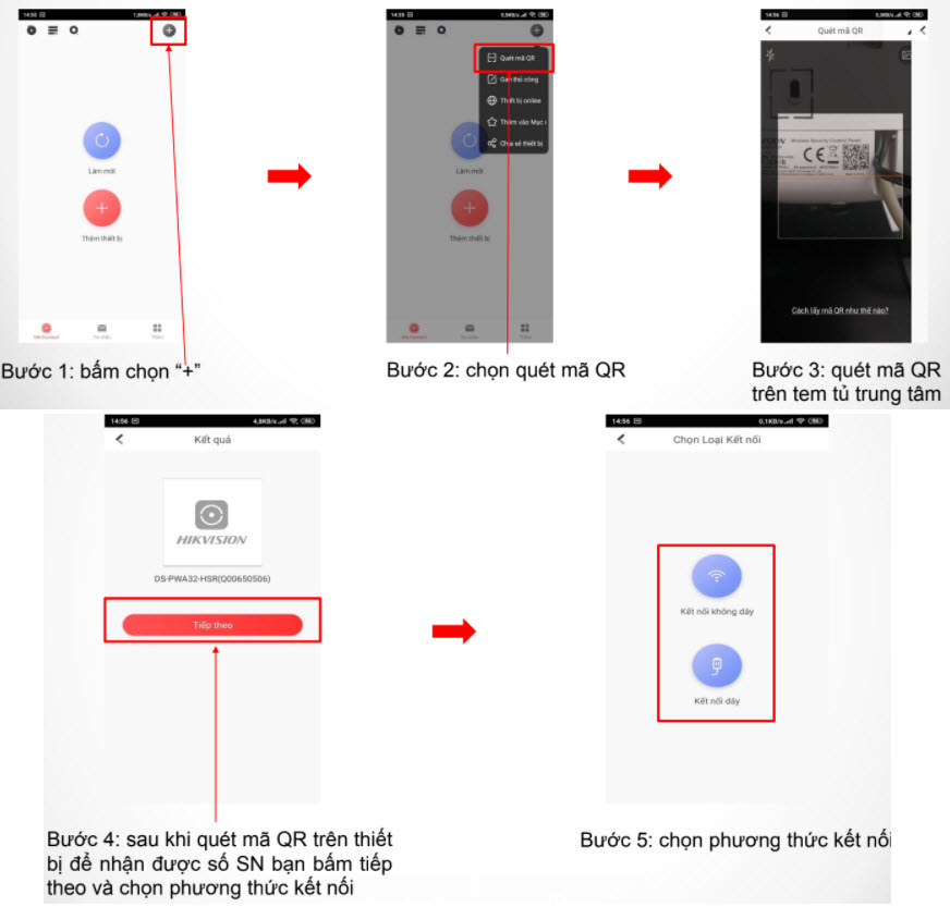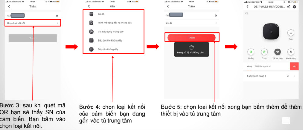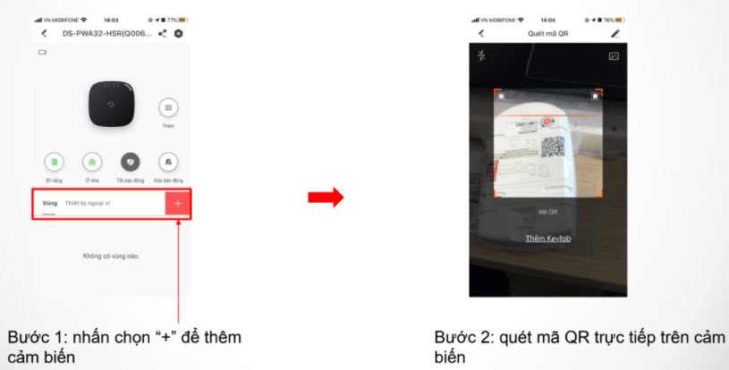 Để thêm cảm biến bằng ứng dụng Hik-Connect bạn làm theo các bước sau: