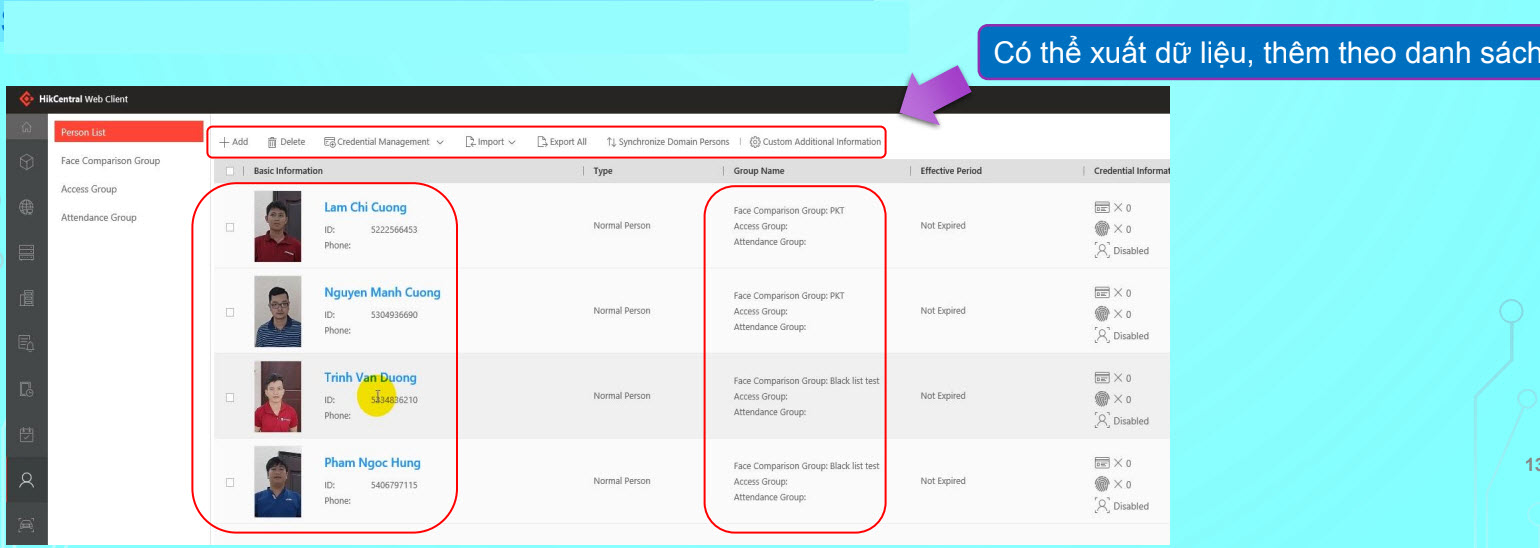 Sao khi tạo xong sẽ thấy danh sách khuôn mặt và thông tin