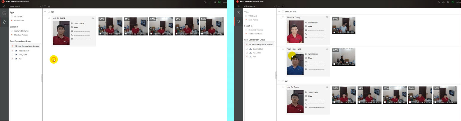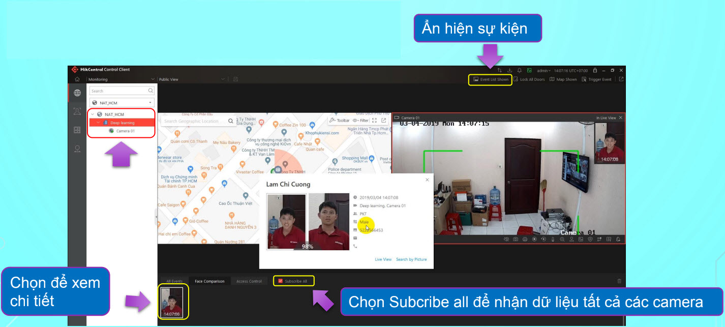 Kết quả sẽ được lấy từ tất cả các camera xuất lên, lọc theo group