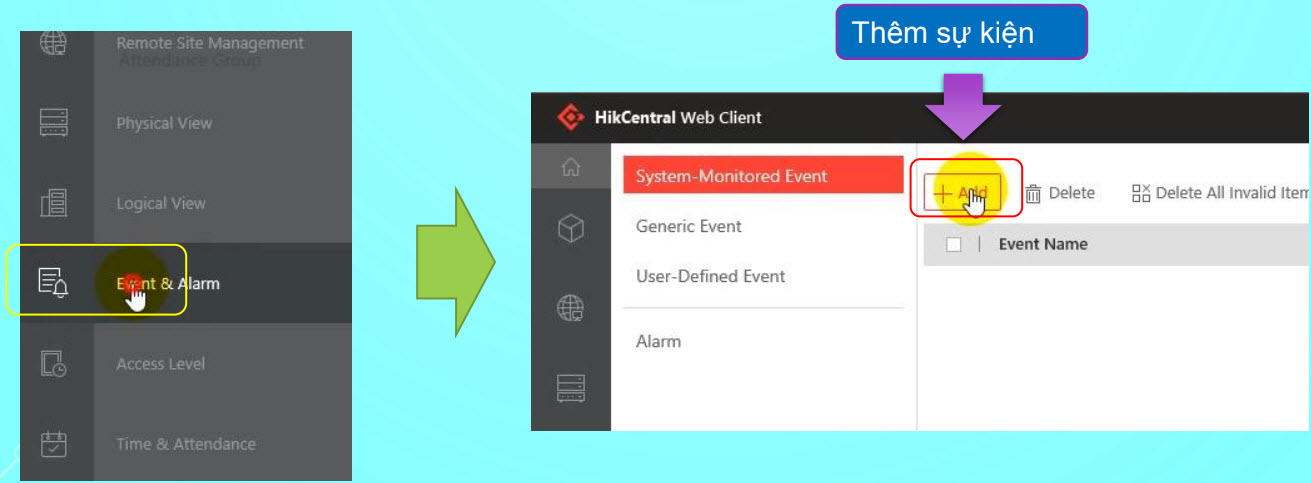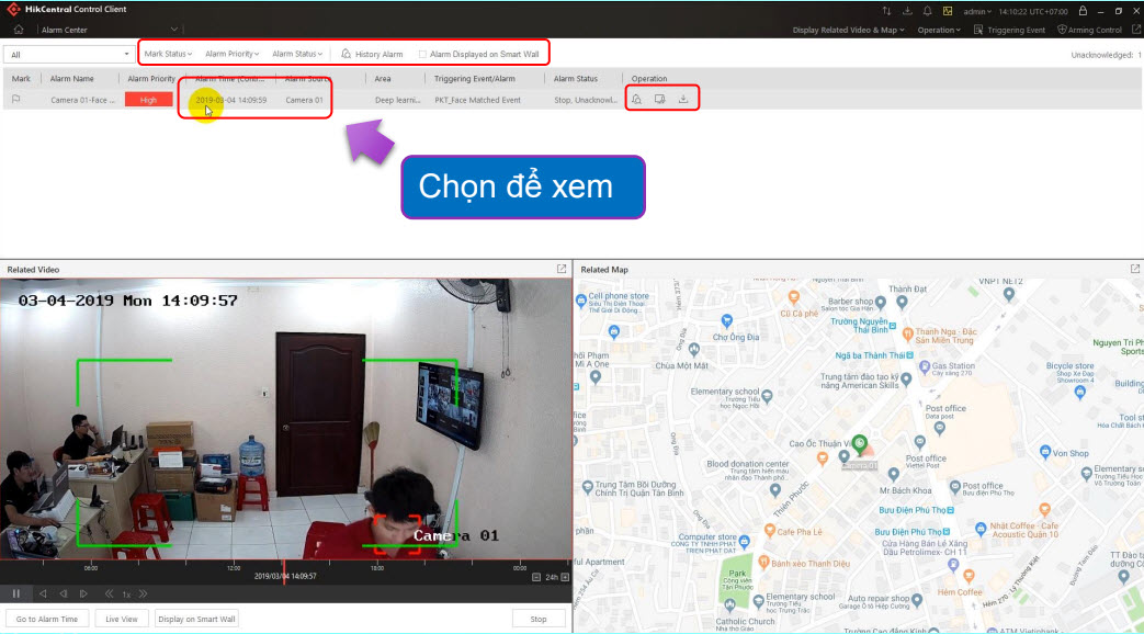 Chọn vào sự kiện để xem -> có thể lọc sự kiện, tìm kiếm hoặc tải về máy tính