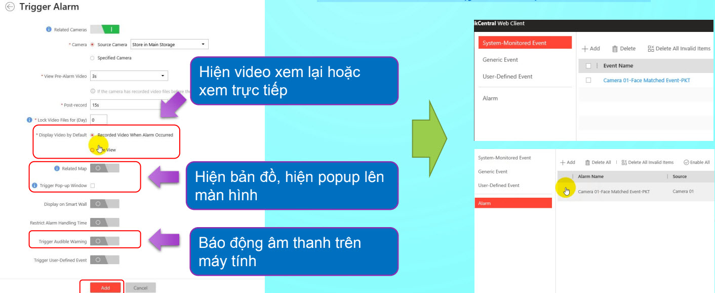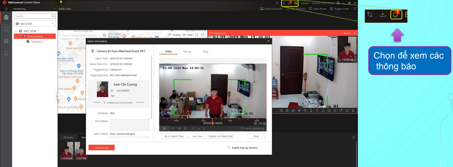 Khi có báo động trùng khớp khuôn mặt thì phần mềm báo popup lên và phát âm thanh(nếu cài đặt)