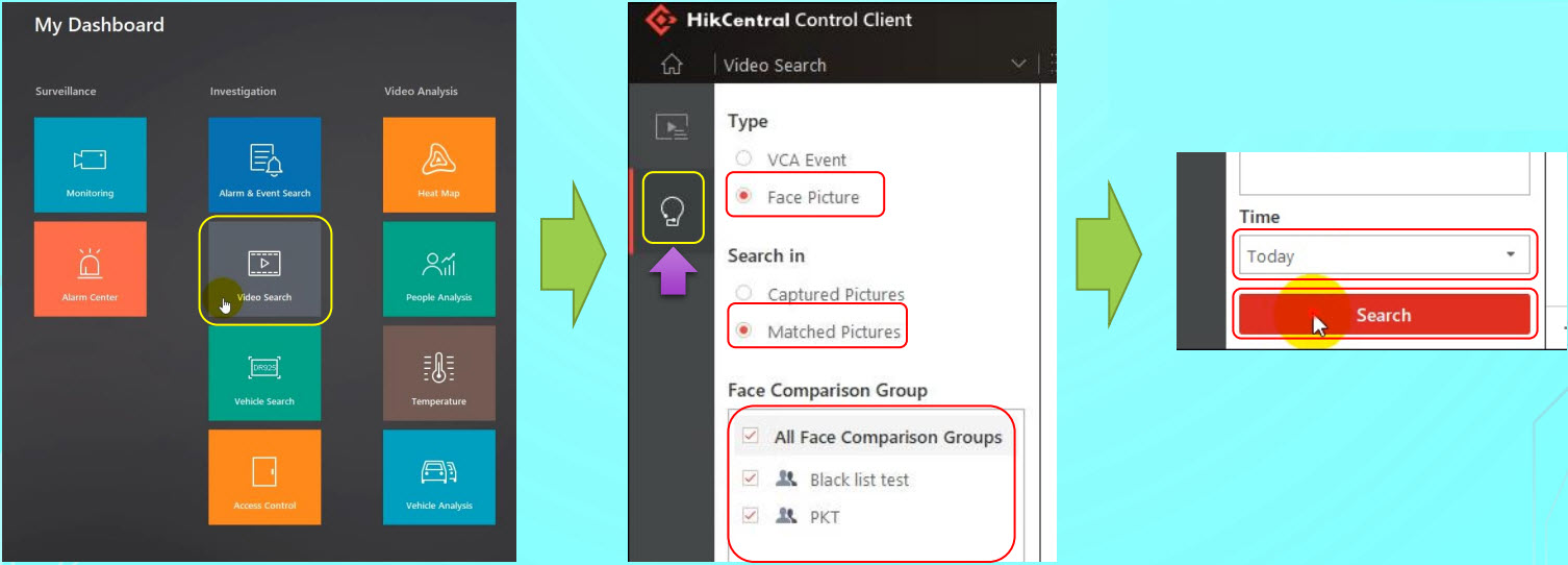 Hiện tại Hik-Central hỗ trợ tìm theo hình ảnh, hoặc tìm kiếm hình chụp cho đầu ghi Deep in Mind iDS-9632NXI-I8/4F chưa hỗ trợ cho camera iDS-2CD8426G0/F-I