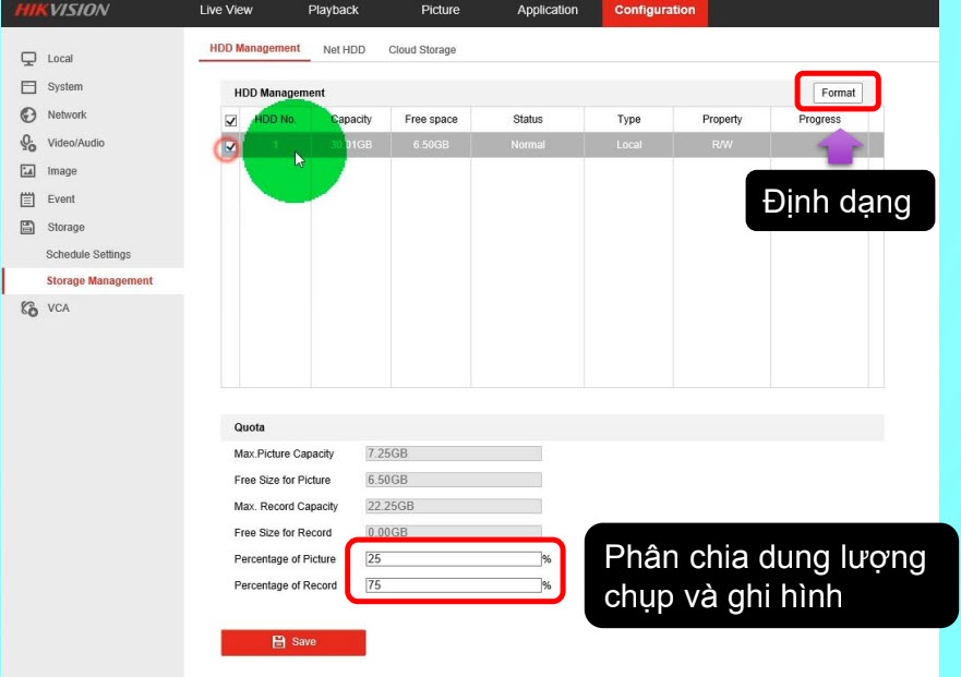 Hình ảnh chụp có thể lưu trên thẻ nhớ và đầu ghi IP