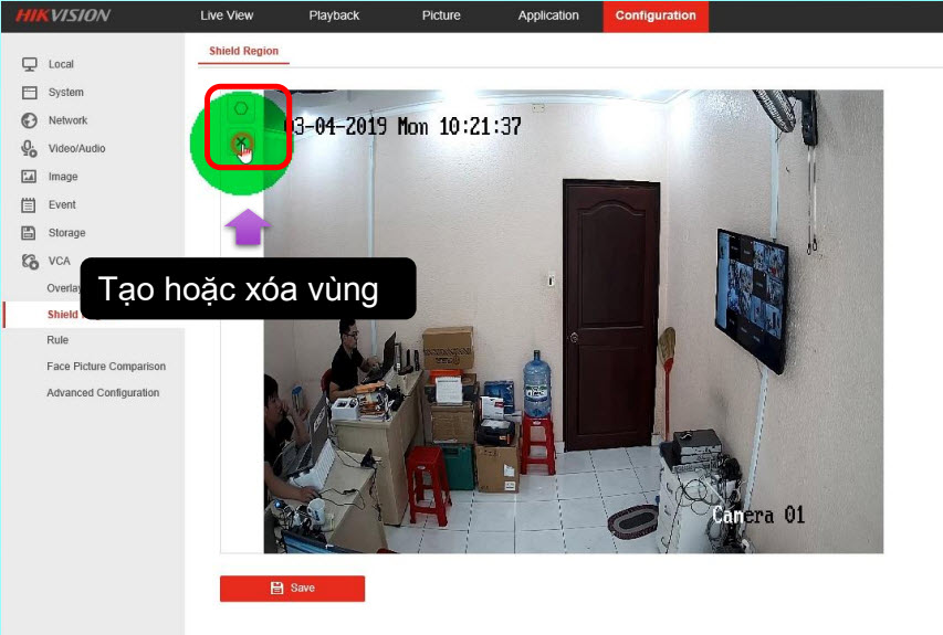 Cài đặt khu vực bảo vệ: Vùng không nhận dạng