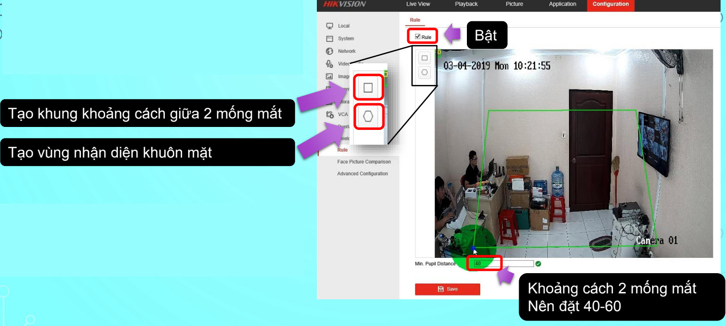 Chú ý: Ở vùng này, camera sẽ không nhận dạng khuôn mặt