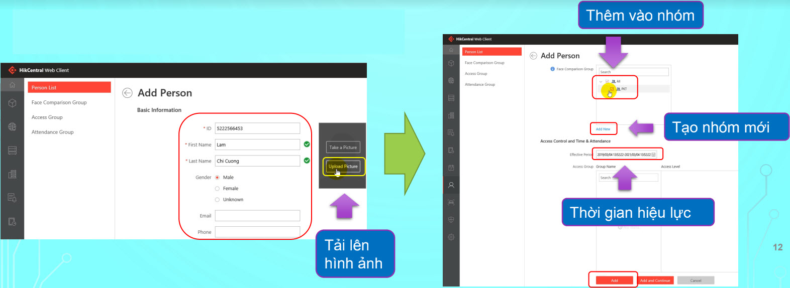 Nhập thông tin và tải lên hình ảnh khuôn mặt