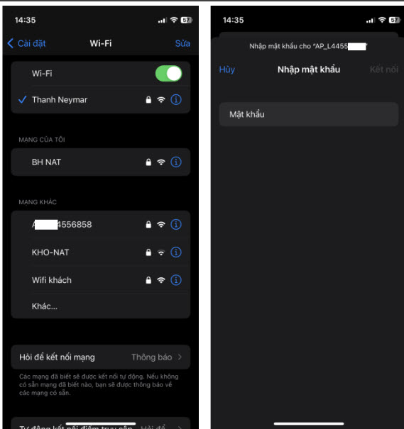 Kết nối điện thoại đến mạng wifi của thiết bị