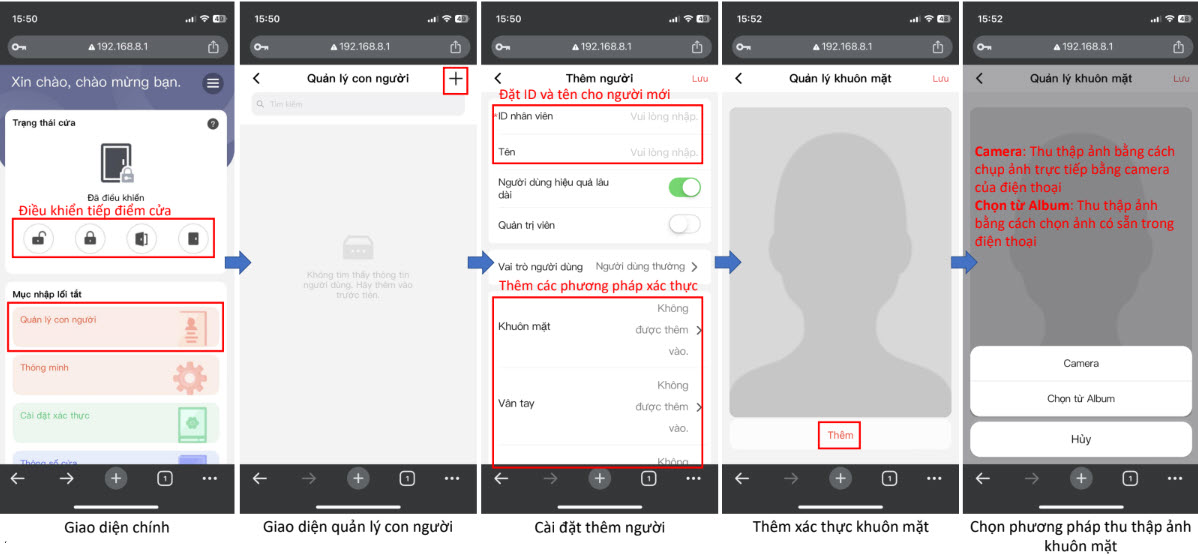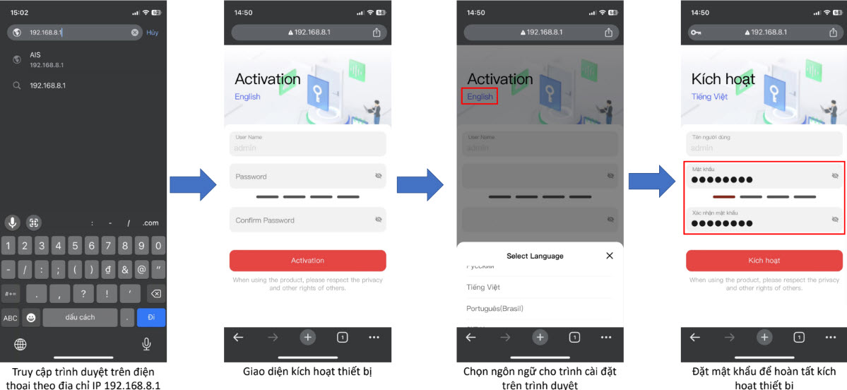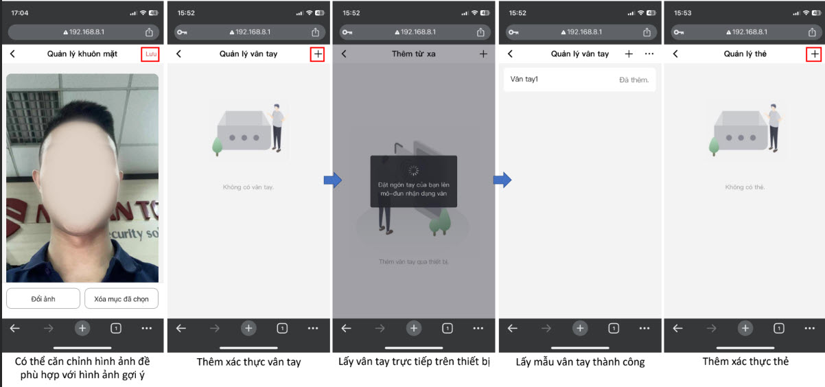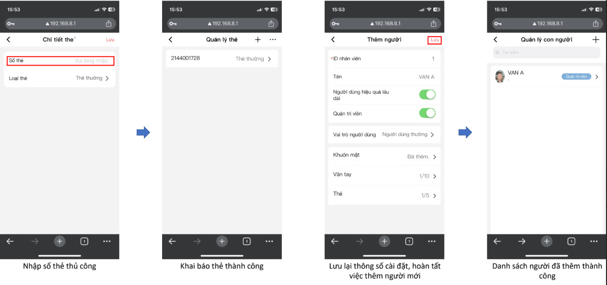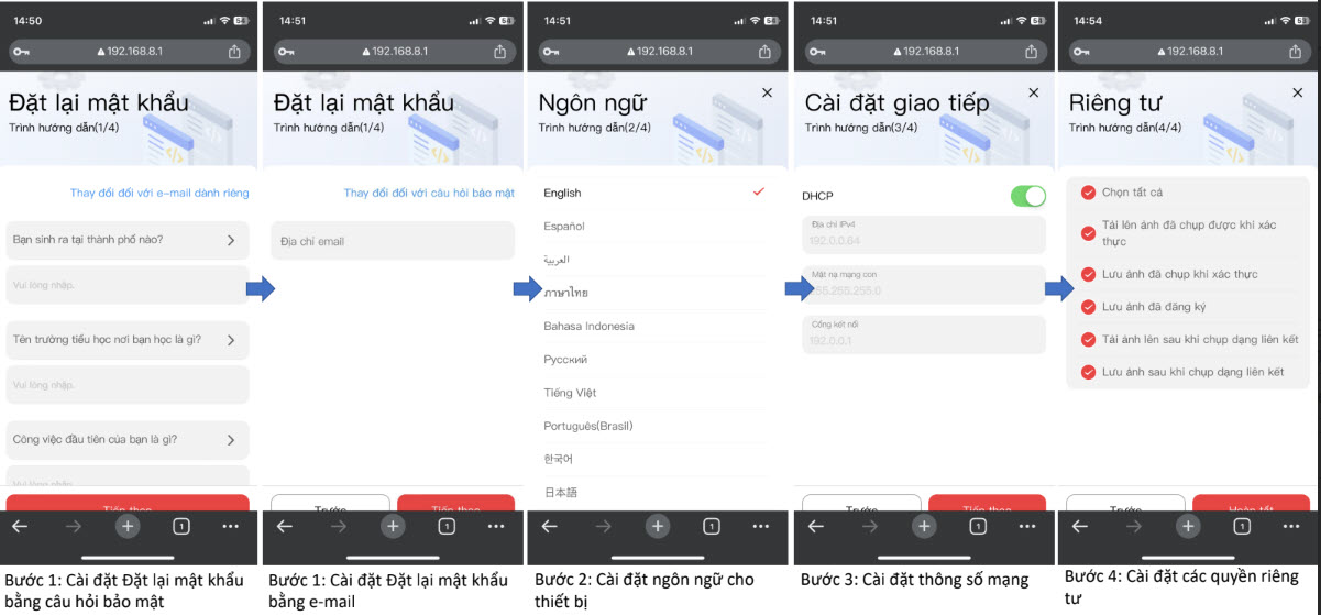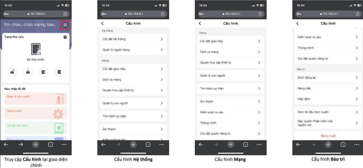 Các thông số cấu hình qua giao diện web trên điện thoại