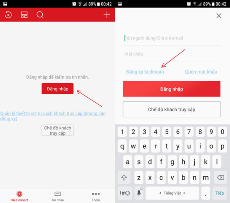 Cài đặt ứng dụng Hik-Connect, đăng nhập/đăng ký tài khoản như hướng dẫn ở phần 1.