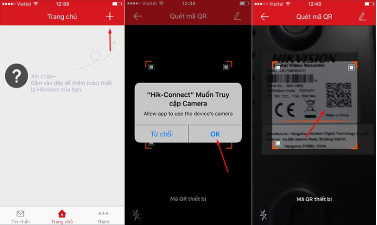 Chọn quét QR, yêu cầu truy cập camera, bạn chọn OK để ứng dụng truy cập camera.