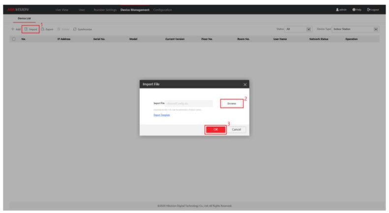 Khi vào cấu hình từ xa của nút nhấn, chọn Device Management > Export để xuất tệp channelConfig sau đó nhập thông tin thiết bị