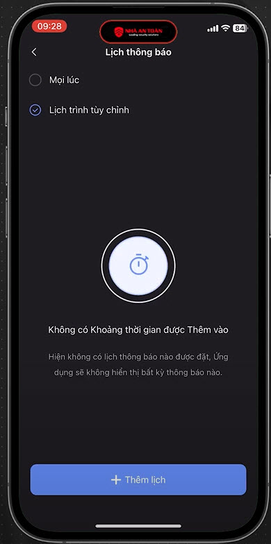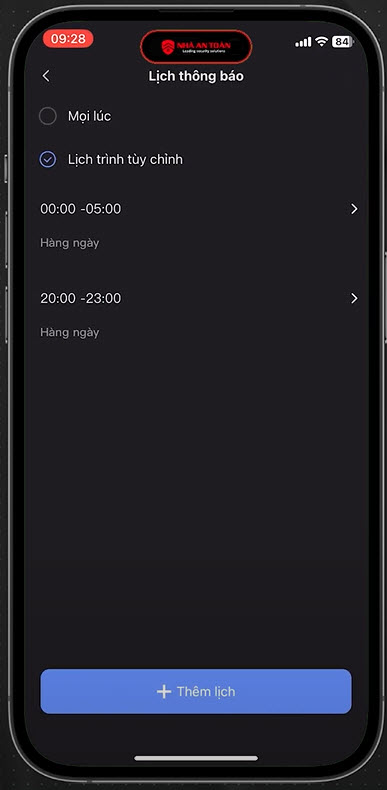 Ezviz rồi ở phần lịch thông báo này chúng ta mặc định sẽ là mọi lúc chúng ta có thể lựa chọn xuống lịch trình tùy chỉnh và thêm lệch cài đặt một ngày chúng ta có thể đặt nhiều lệnh