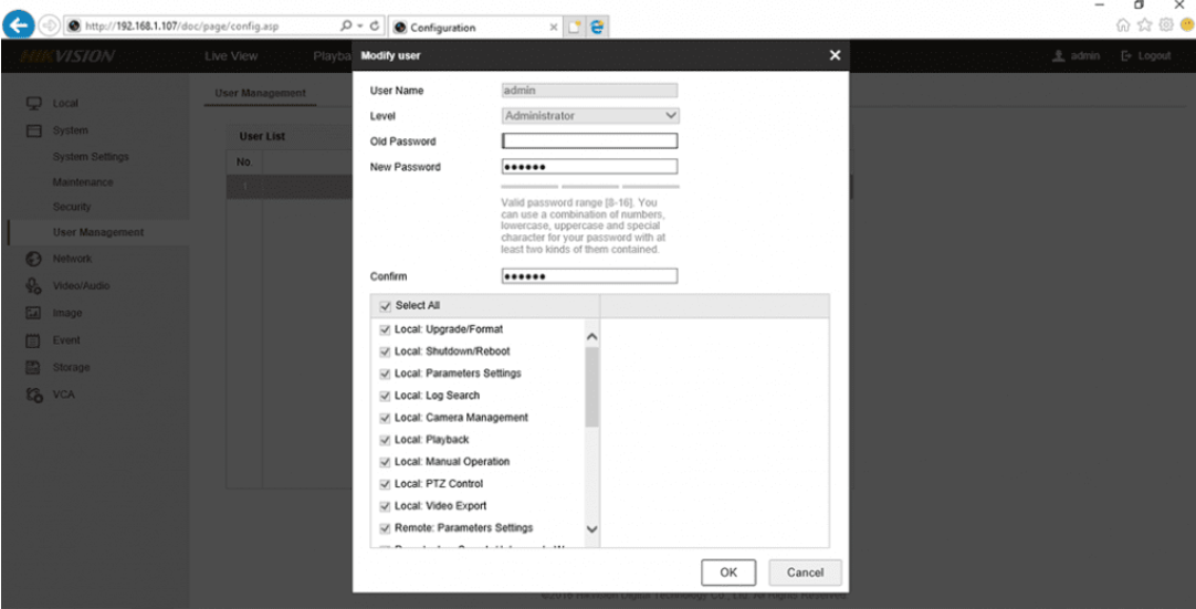 Hướng dẫn cách thay đổi mật khẩu đầu ghi Hikvision qua trình duyệt web, bao gồm các bước đăng nhập, điều chỉnh trong User Manager, và xác nhận mật khẩu mới.