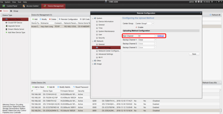Bước 2 : Chọn vào mục Network -> Report Strategy . Sau đó ở mục Center Group bạn tích Enable và sau đó ở mục Main chanel bạn chọn N1
