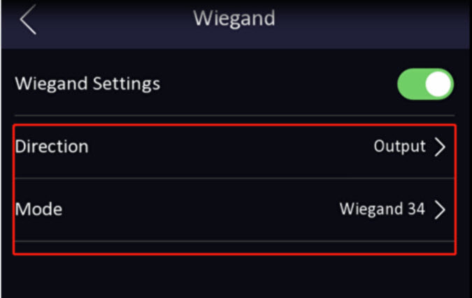 Đối với cấu hình Wiegand, chúng ta cần chọn hướng đầu ra. Bao gồm chế độ wiegand26 và wiegand34. Quý khách có thể chọn một trong ba cách sau để thiết lập các thông số: