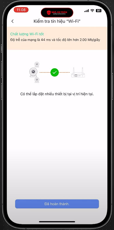 Lưu ý: Việc kiểm tra tín hiệu mạng wifi giúp bạn đánh giá chất lượng mạng trong khu vực lắp đặt camera. Nếu kết quả cho thấy tín hiệu chưa ổn định, bạn có thể xem xét việc di chuyển router hoặc sử dụng các thiết bị gia tăng sóng wifi để cải thiện tín hiệu.