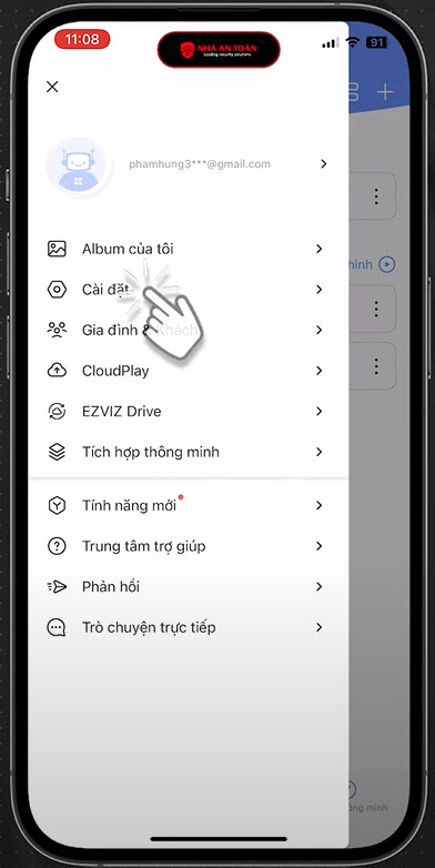 Trên màn hình chính của ứng dụng, kéo xuống và chọn "Cài Đặt" từ danh sách các tùy chọn.