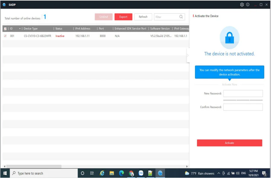 Sau khi tải xong và cài đặt vào máy tính, ta cần kết nối camera ezviz với mạng Lan rồi sau đó mở công cụ SADP Tool tạo mật khẩu cho camera wifi Ezviz.