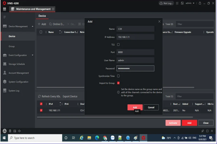 Bước tiếp theo sau đó Kết nối Ezviz với phần IVMS-4200.