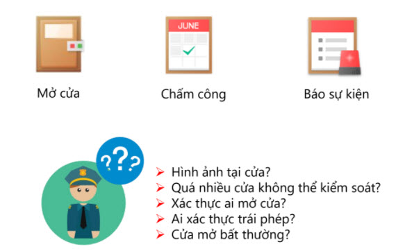 Tên thiết bị: có người đăng nhập, gán thẻ, xóa thẻ...