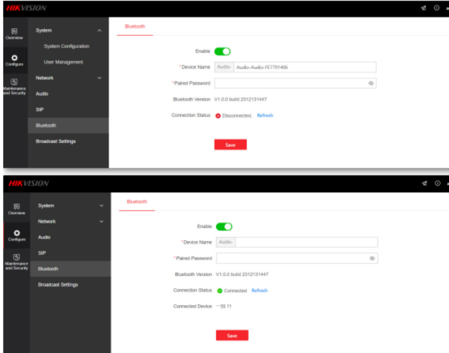 Đăng nhập vào thiết bị, sau đó nhấp vào Cấu hình -> Bluetooth để vào trang cấu hình.