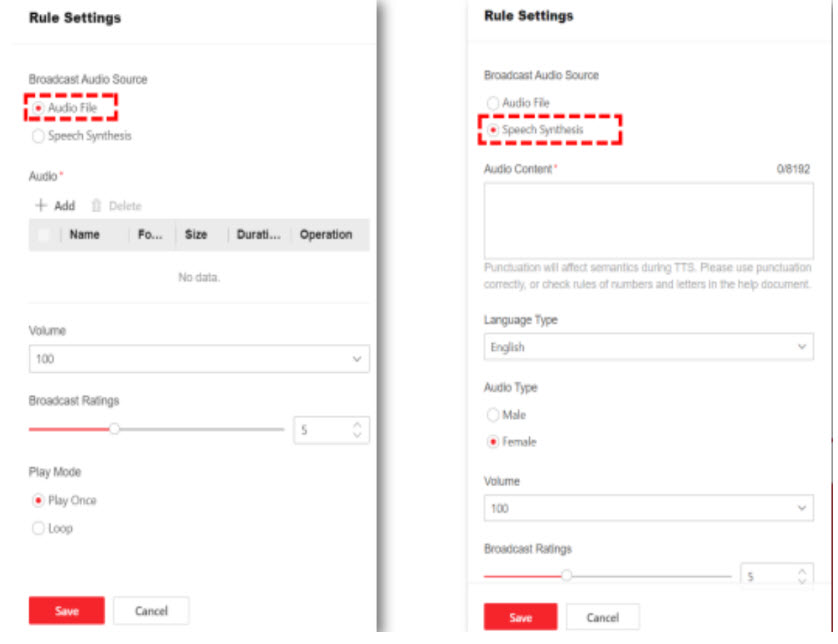 Trong trang này, có hai loại nguồn để phát, bao gồm Tệp âm thanh và Tổng hợp giọng nói.