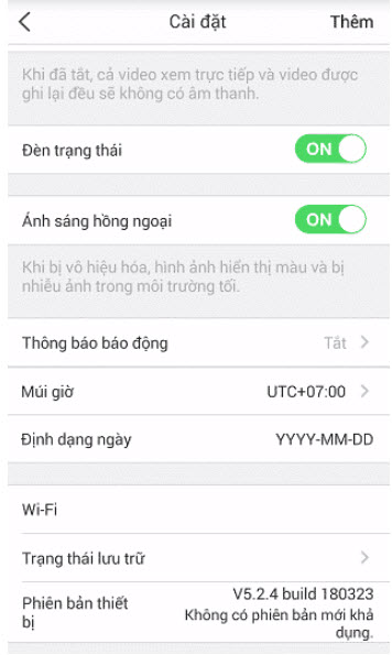 Ánh sáng hồng ngoại : bật tắt hồng ngoại (đèn hồng ngoại để quan sát trong điều kiện ánh sáng yếu hoặc không có ánh sáng)