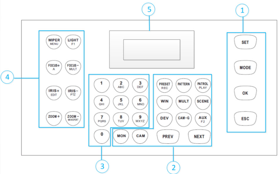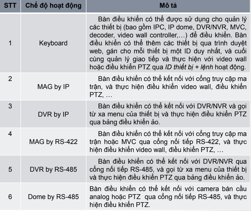 Chọn chế độ hoạt động là Keyboard nhấn trực tiếp Num + CAM để chọn camera PTZ cần điều khiển.