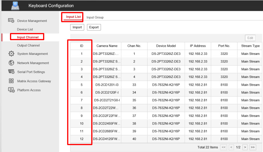 Trong đó Num là ID của camera IP PTZ được gán vào bàn điều khiển (hiển thị trong mục Input Channel).