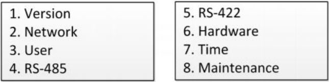 Có thể cấu hình các thông số bao gồm: mạng, người dùng, RS-422, RS-485, phần cứng, thời gian và bảo trì.